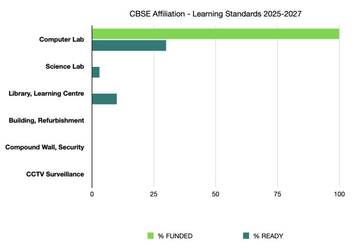 Die Grafik zeigt den Stand der bereits gespendeten Mittel (hellgrün) und der Ausgaben bis zum aktuellen Quartal (dunkelgrün), in Prozent des Budgets.